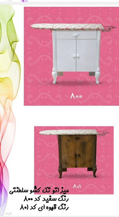 فروش اینترنتی میز چرخ و اتو چوبی قهوهای و سفید جدید بسیار با کیفیت و ارسال فوری به سراسر ایران و قیمت مناسب و ارزان در دو رنگ جذاب پشتیبانی سریع و مطمئن و مشاوره رایگان