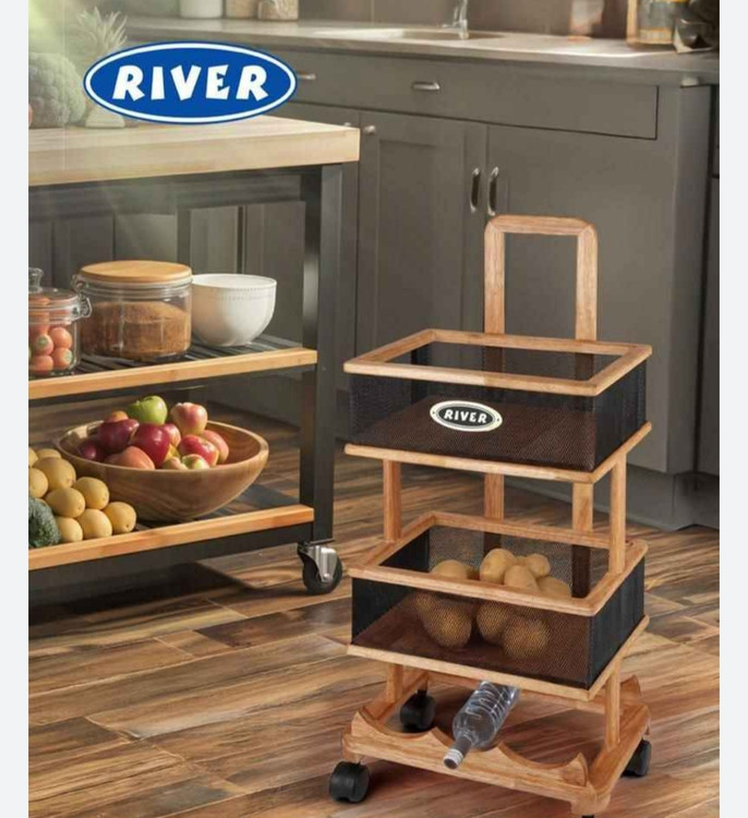 خرید اینترنتی سبد سیب زمینی و پیاز چوبی دوطبقه ریور که چرخ دارد و با کیفیت عالی و قیمت مناسب و ارسال فوری به سراسر ایران و ترند این روزهای جهیزیه هست