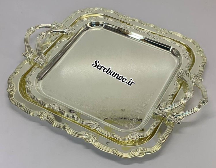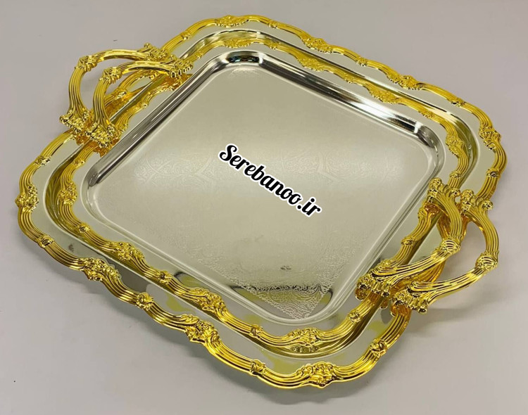 خرید اینترنتی سینی پذیرایی استیل دو پارچه وارداتی عربی ضخیم ۸ میل با کیفیت عالی و قیمت مناسب و ارزان و دست اول و شیک و جدید لعاب فورتیک و فلزی و