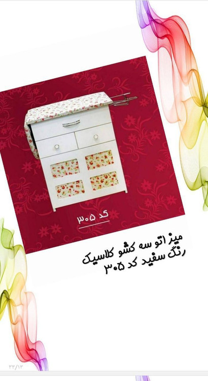 خرید اینترنتی میز اتو چوبی سه کشو سفید پارچه گل گلی با کیفیت عالی و قیمت مناسب و ارزان است و به سراسر ایران ارسال فوری داریم