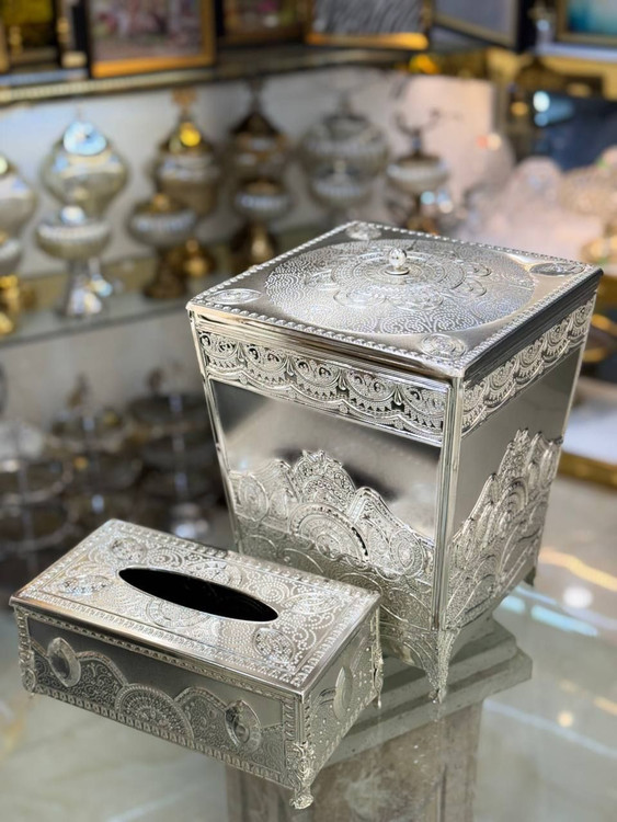 سطل دستمال چهارگوش طرح خاتم آنتیک نقره ای فورتیک