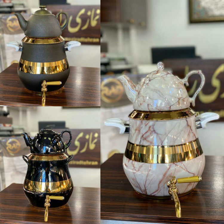 کتری قوری RAD طرح سنگ طلایی گلابی کف چدن و دسته استیل با ضمانت